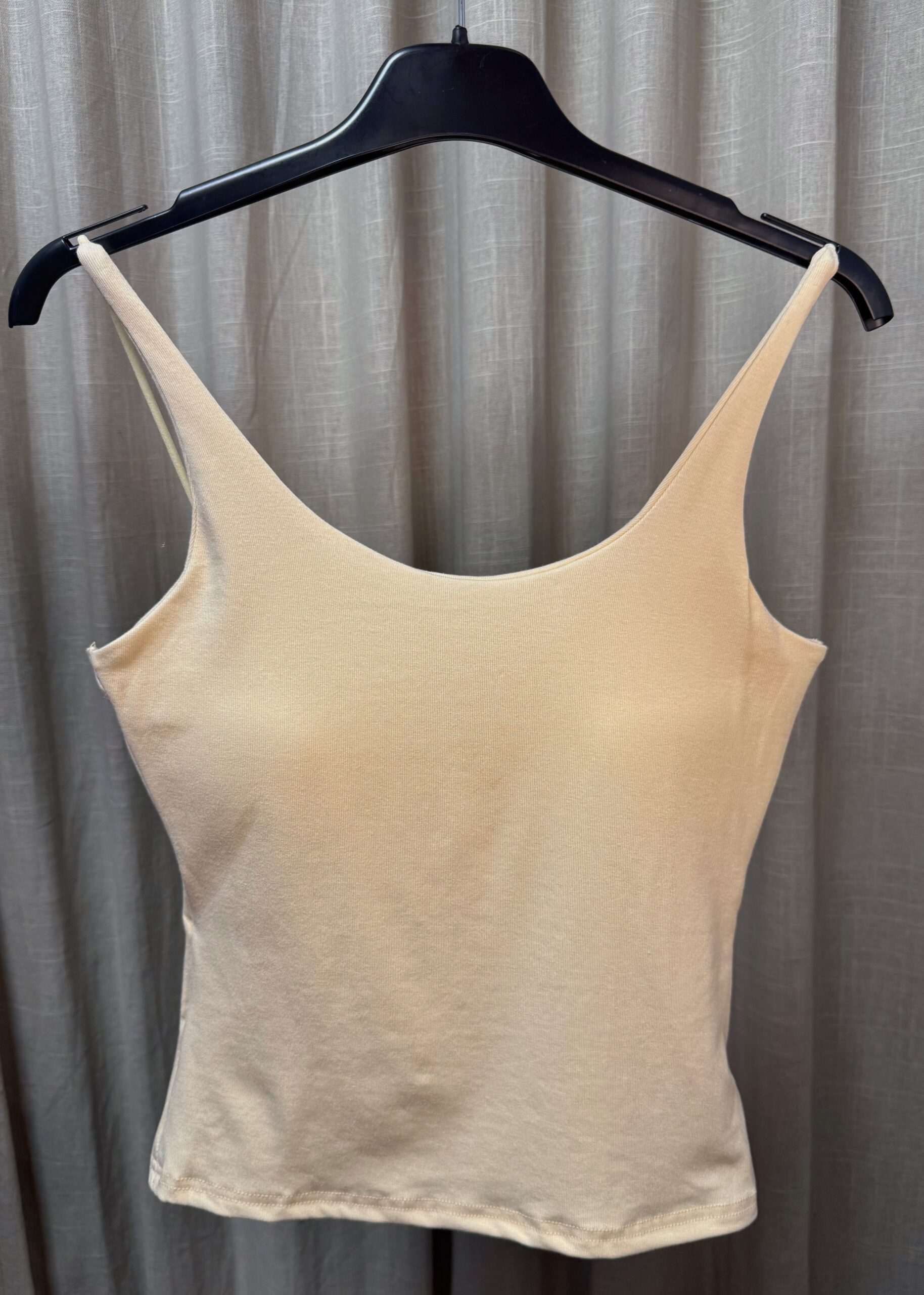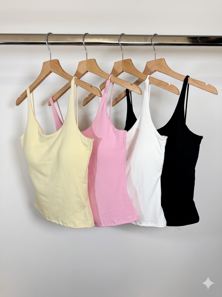 Corte justo que acompanha o corpo sem apertar, alças finas reguláveis, copa incorporada para suporte extra e tecido macio que parece uma segunda pele. Simples, mas com classe. ✨